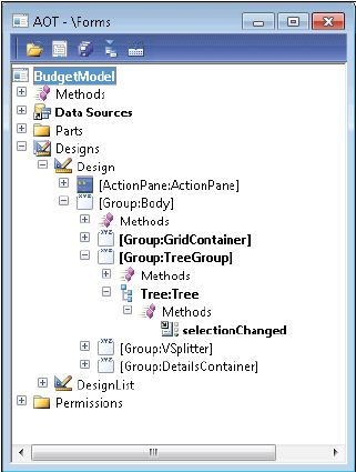 2. In the AOT, open the BudgetModel form's design, expand the Body group, then